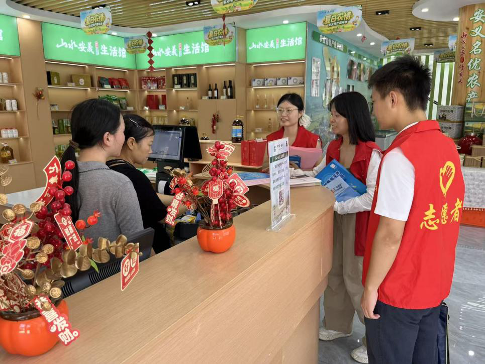 在文峰历史街的“山水安义生活馆”等特色商户店内,身着红色志愿服的志愿者与商户面对面交流。在信用知识普及环节,详细讲解信用体系对商户经营的实际影响;在诚信典型宣传环节,分享了县内多家诚信商户因守信经营而赢得市场、实现发展的生动事例。